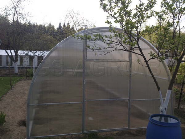 Такая вот теплица является самостоятельным строением, в отличие от смежной теплицы. Тепличный материал закрепляется на каркасе.